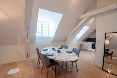 ★ Un cadre prestigieux au cœur d’Orléans Bienvenue sur la place la plus emblématique de la ville : la place du Martroi. Situé dans un immeuble historique entièrement rénové, ce superbe appartement sous les toits marie avec élégance le charme de l’ancien et le confort contemporain. Ici, tout se fait à pied : restaurants, boutiques, musées, tramway… avec vue dégagée sur toute la place !