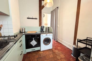 Vous aimez cuisiner ? La cuisine aménagée est parfaite pour préparer vos repas à toute heure. Tout est là pour vous simplifier la vie : plaques, four, grille-pain, bouilloire, congélateur. Que ce soit pour un dîner à deux ou un déjeuner rapide avant de repartir explorer la ville, vous disposez de tous les équipements nécessaires. Café, thé sont à votre disposition.
