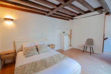 🛏️ Une grande chambre lumineuse avec lit double (140 cm), rangements et poutres apparentes