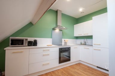 Vous aimez cuisiner ? La cuisine aménagée est parfaite pour préparer vos repas à toute heure. Tout est là pour vous simplifier la vie : plaques vitrocéramiques, four, micro-ondes, lave-vaisselle, grille-pain, bouilloire, congélateur. Que ce soit pour un dîner entre amis ou un déjeuner rapide avant de repartir explorer la ville, vous disposez de tous les équipements nécessaires. Café, thé sont à votre disposition.