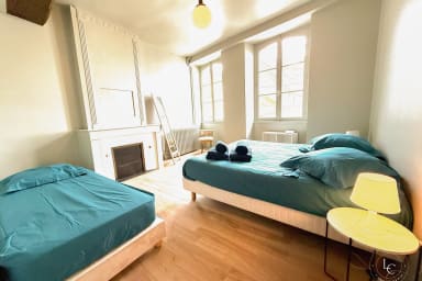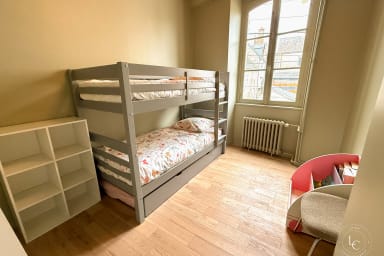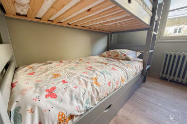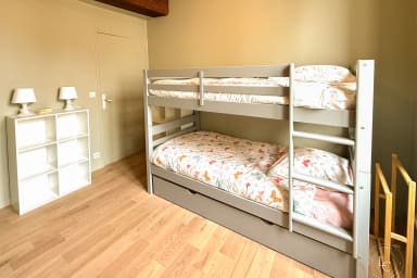 - Deux grandes chambres lumineuses : - une chambre grande chambre avec lit double, et un lit simple ; - une chambre familiale avec lits superposés.