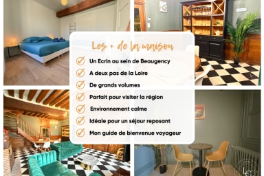 Superbe maison de ville au cœur de Beaugency, dans une bâtisse historique avec poutres, boiseries et grand séjour lumineux. Composée de 2 chambres, et pouvant accueillir jusqu’à 5 personnes, elle dispose d'une grande pièce de vie, d'une cuisine équipée, et d'une salle de bain élégante. À deux pas du château, de la Loire et des commerces. Parfait pour familles, couples ou voyageurs !